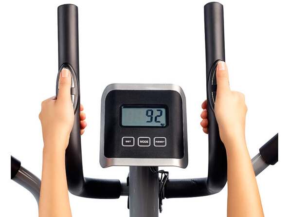 Ce modèle est à la fois performant et très abordable. Il est en effet équipé d'un cardio-fréquencemètre. Les capteurs du rythme cardiaque sont intégrés aux poignées. Il suffit de les saisir pour que l'écran affiche le nombre de pulsations par minutes. Vous pouvez ainsi vous entraîner danger, mais aussi maximiser l'efficacité de la séance d'entraînement.