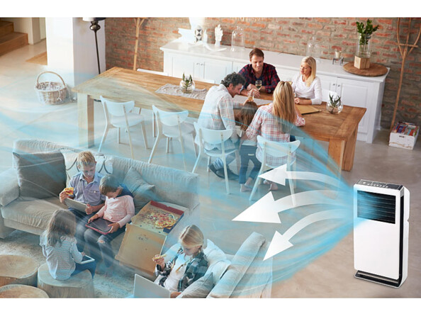 Lorsque le soleil est au zénith, profitez d'un agréable souffle d'air frais. Ce puissant rafraîchisseur d'air souffle jusqu'à 700 m³ d'air frais par heure pour vous aider à supporter les chaudes journées d'été.