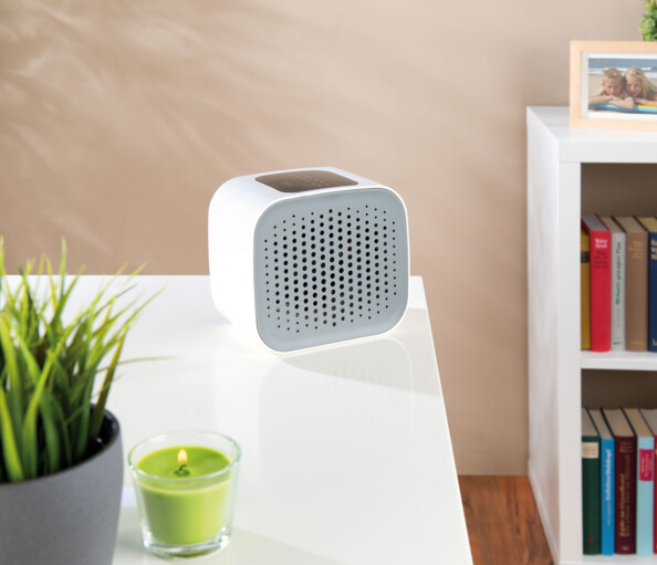 Avec ses deux filtres, le mini purificateur d'air constitue un allié de poids pour vos toilettes ou petite salle de bains. Éliminez acariens, poussières, pollen et même particules de pollution sur une surface jusqu'à 15 m². Une fois votre air filtré, le purificateur enrichit l'air ambiant en ions négatifs, pour une sensation de bien-être encore plus forte.