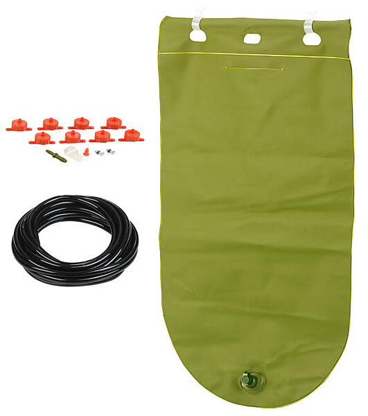 - Pack de 2 réservoirs d'eau avec tuyaux, 16 goutteurs, raccords, 2 pièces de raccord, matériel de montage et mode d'emploi en français