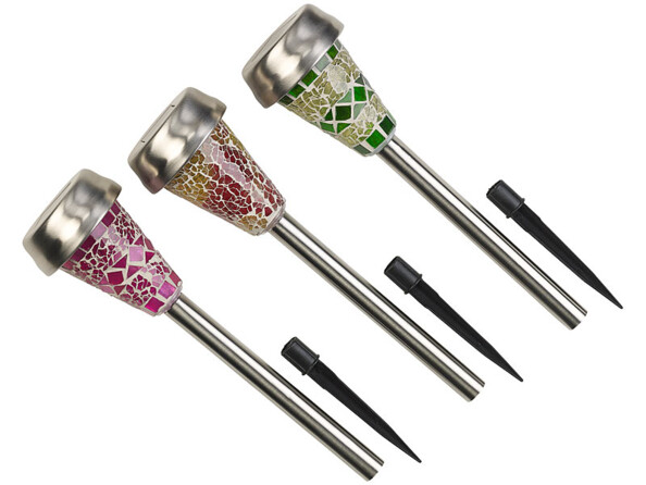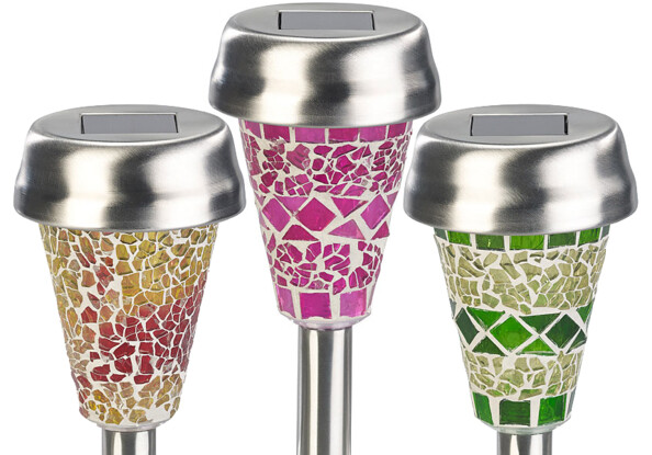 Avec leur belle mosaïque, les bornes apportent une touche à la fois colorée et lumineuse à votre jardin.