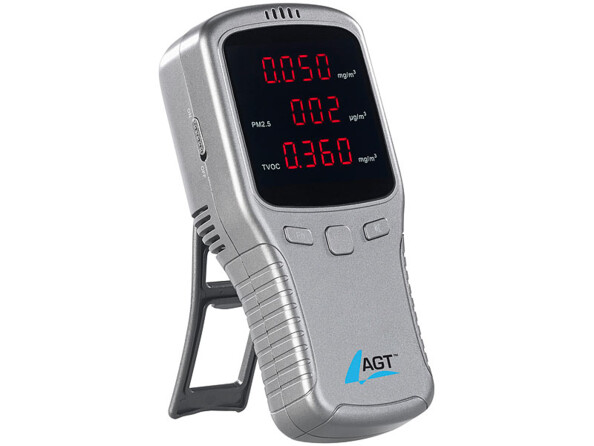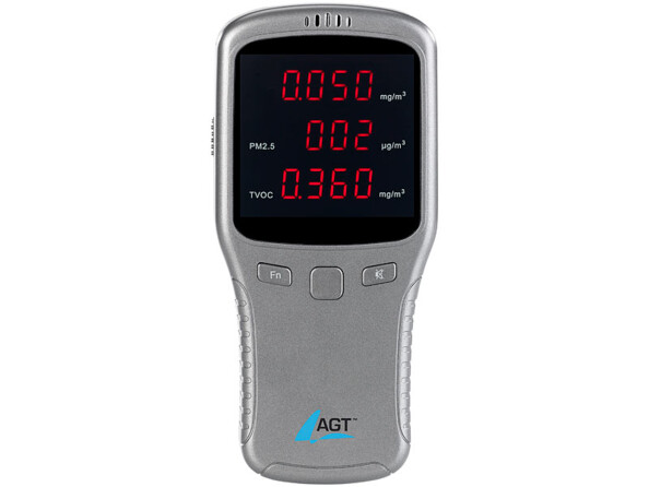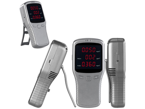 - Plage de mesure HCHO : 0 - 1.999 mg/m³, PM2,5 : 0 - 999 µg/m³, COVT : 0 - 9.999 mg/m³
