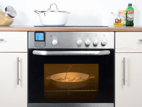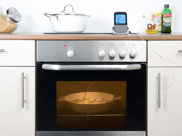 Effectuez tous vos réglages sur la partie mobile à écran XL. Vous n'avez même pas besoin de rester à côté du four. Une fois les capteurs plantés dans la viande, vous pouvez emporter la partie mobile partout et ne revenir que lorsque la viande est bien cuite.