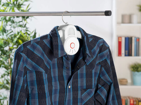 Le cintre sèche-linge est là pour vous : suspendez simplement votre vêtement dessus - chemise, chemisier, robe, t-shirt - et allumez-la soufflerie : le tissu est séché à l'air chaud ou froid !