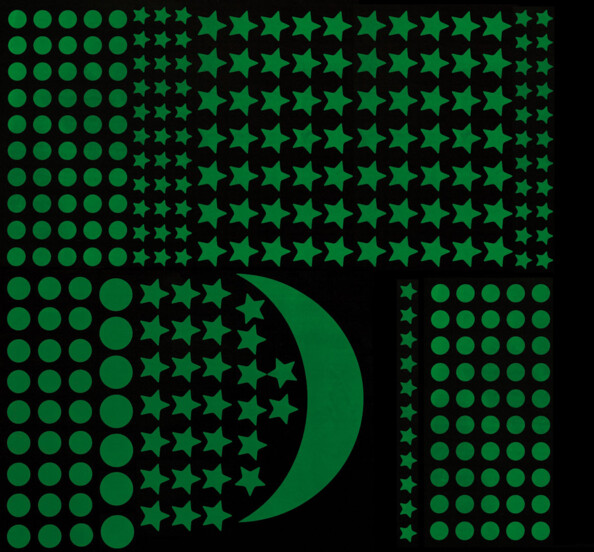 Voici des étoiles phosphorescentes à coller sur les murs et le plafond.