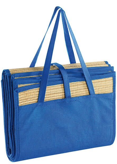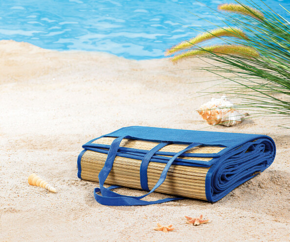 - Natte de plage pliable en raphia avec coutures bleues (logotée Pearl)