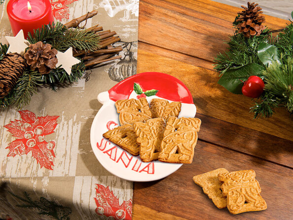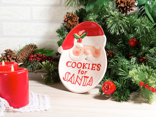 Remplissez l'assiette de petits gâteaux pour les fêtes de fin d'année. Grâce à son motif en forme de Père Noël, l'assiette peut même être utilisée comme décoration !