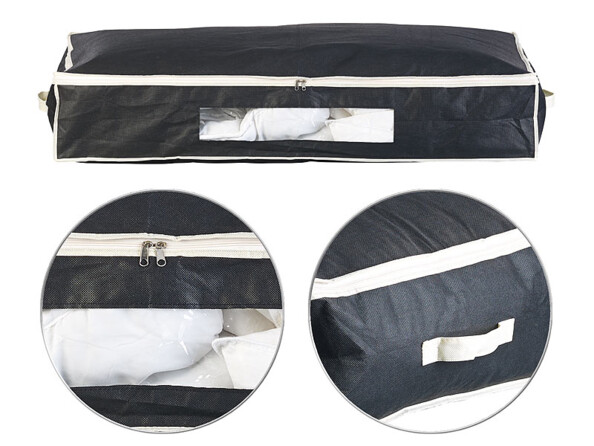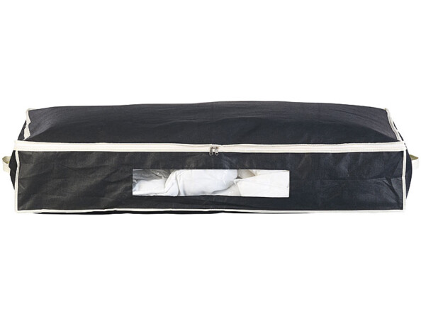 Rentabilisez efficacement l'espace sous le lit ! Les deux housses de rangement coloris noir Infactory abritent de façon fiable votre garde-robe, vos draps ou couvertures. Elles protègent efficacement vos textiles contre la poussière, la saleté et les acariens. Dépliez-les, glissez-y vos affaires grâce à leur grande ouverture, et rangez-les aussi simplement. Grâce aux poignées latérales pratiques, vous pouvez attraper et déplacer les housses sans encombre. Il vous suffit ensuite de jeter un œil à leur fenêtre transparente pour avoir une idée du contenu sans avoir à défaire leur fermeture.