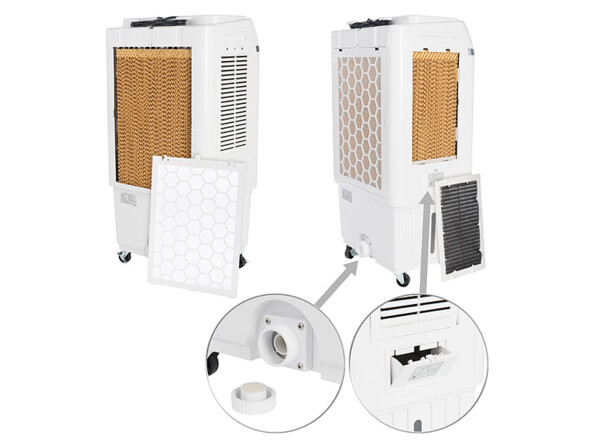 Profitez d'une brise rafraîchissante, d'une humidité équilibrée et d'un air plus pur ! Le rafraîchisseur / humidificateur offre des performances exceptionnelles pour votre bureau, atelier ou chapiteau, même de grandes dimensions. Un rafraîchissement idéal en été : l'air frais et humide agit comme une douce brise marine sur votre peau. Et contrairement aux systèmes de climatisation agressifs, ce rafraîchissement par l'eau est totalement inoffensif !