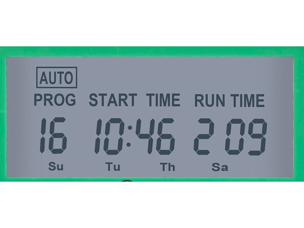 - Écran LCD : pour heure, statut de l'arrosage et des piles