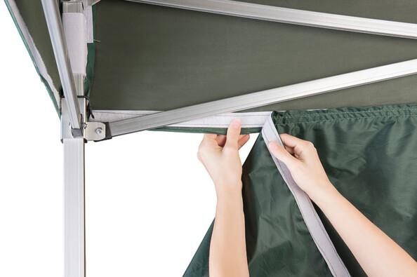 Le petit plus pratique : votre pavillon peut être personnalisé selon vos envies. Grâce aux bâches de rechange disponibles séparément, agrémentez la structure d'une porte ou d'une fenêtre. Il suffit de peu pour vous créer un véritable petit nid estival.
