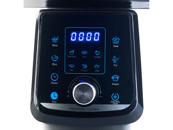 - Écran LED tactile avec 11 préréglages (durée et température prédéfinies) pour soupe, riz, poisson, fruits de mer, gâteau, porridge, pour faire mijoter ou griller, mais aussi pour la cuisson lente, la cuisson à la vapeur ou comme dans un four