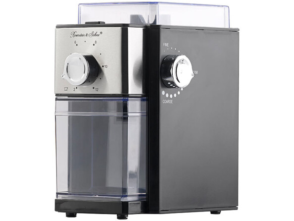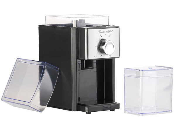 - Capacité réservoir à grains : 250 g, bac collecteur pour café moulu : 100 g