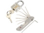 Outil de crochetage à 7 passe-partout avec cadenas d'entrainementAméliorez vos compétences en lockpicking : entraînez-vous simplement sur cette serrure transparente.