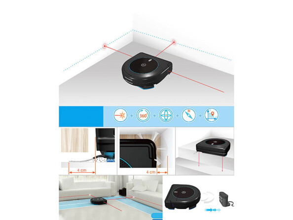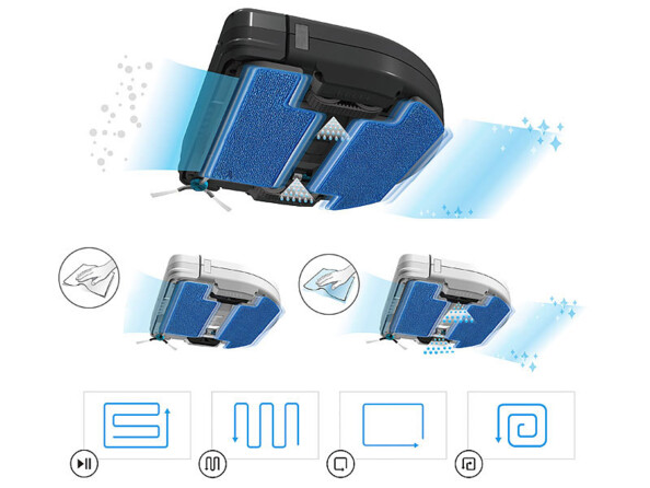 Ensuite, il pulvérise de l’eau en quantité adaptée à la température ambiante, puis essuie à nouveau. Il ne laisse pas le sol humide, mais parfaitement propre et essuyé. À l’aide de son capteur gyroscopique et de sa boussole électronique, il navigue partout et avec précision dans votre habitation, et enregistre les virages et la direction prise.