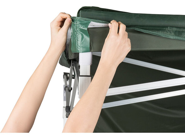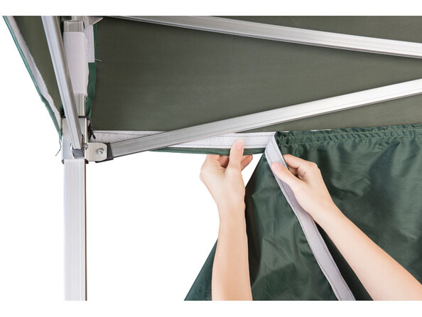 - Fixation des bâches latérales au pavillon simple et rapide avec des scratchs