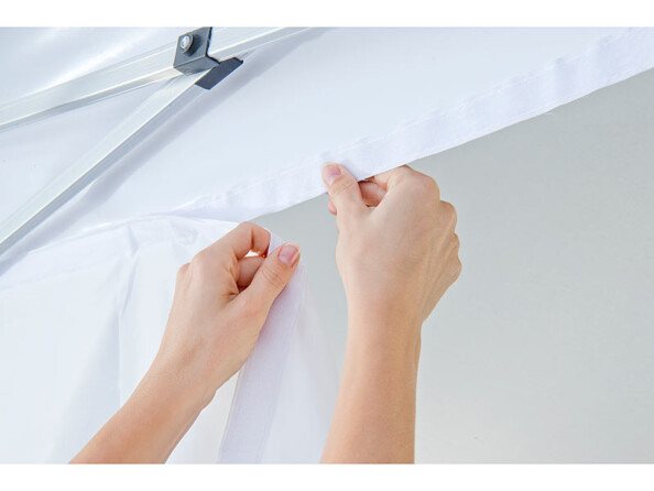 - Fixation des bâches latérales au pavillon simple et rapide avec des scratchs