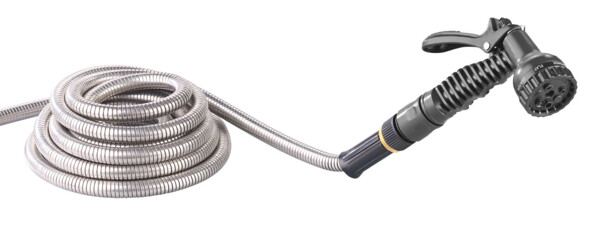 Tuyau d'arrosage extensible en acier inoxydable avec douchette à 43,95 €