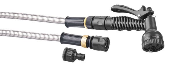 Conçu pour le jardinage : votre tuyau ne se plie pas, ne se tord pas et ne se noue pas. Grâce à son boîtier robuste en acier inoxydable, il glisse en toute sécurité et en douceur sur les bords et les pierres. Le tuyau est livré avec une tête de pulvérisation multifonctionnelle pour diverses applications : grâce aux 7 réglages différents, vous pouvez arroser les plantes fragiles avec une pulvérisation douce, irriguer des arbustes plus grands avec un jet de douche, ou nettoyer la cour et la terrasse avec le puissant jet sous pression.