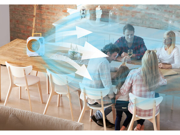 Avec un débit d'air de 300 m³ par heure, vous pouvez rafraîchir une pièce efficacement, même au cœur de l'été. 2 niveaux de rafraîchissement au choix vous permettent même d'ajuster la température.