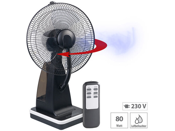 Conçu pour une répartition optimale dans toute la pièce : le flux d'air et la brume sont répartis uniformément grâce aux grandes pales du rotor et à l'oscillation à 90°. Contrôle pratique : contrôlez le fonctionnement grâce aux 5 touches placées sur l'appareil, mais aussi sans bouger de votre canapé grâce à la télécommande fournie.