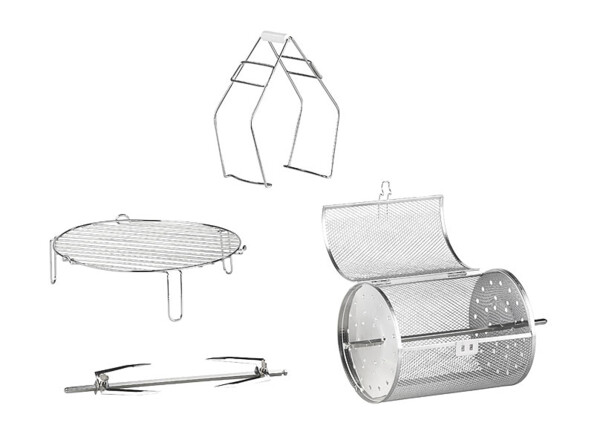 - Accessoires pour différents types de préparation : grille, cage de cuisson et brochette