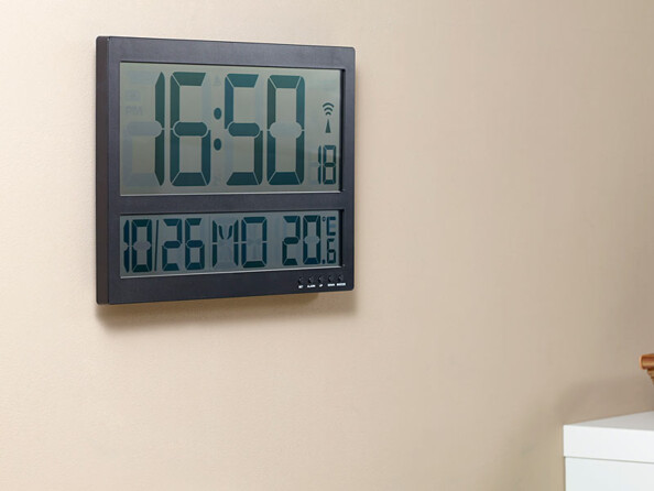 Des lignes claires et un large écran pour une lecture facile de l'heure, même de loin : cette horloge murale digitale est toute destinée aux seniors ou aux personnes à la vue affaiblie, mais également aux grands bureaux où l'heure doit être vue de tous.