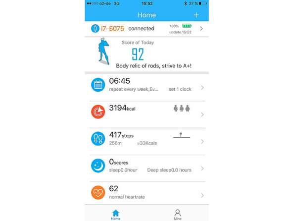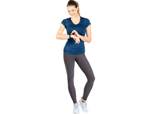 - Fonctions fitness : mesure la fréquence cardiaque, le nombre de pas effectués, la distance parcourue, le nombre de calories brûlées, et la progression quotidienne en %