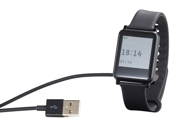 - Batterie li-ion intégrée (100 mAh), rechargeable par USB, autonomie jusqu'à 1 semaine, ou jusqu'à 48 heures en cas de mesure permanente de la fréquence cardiaque
