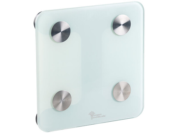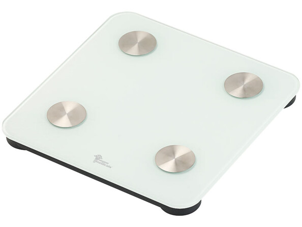 - Surface robuste en verre avec 4 capteurs métalliques intégrés pour un résultat précis et une analyse corporelle
