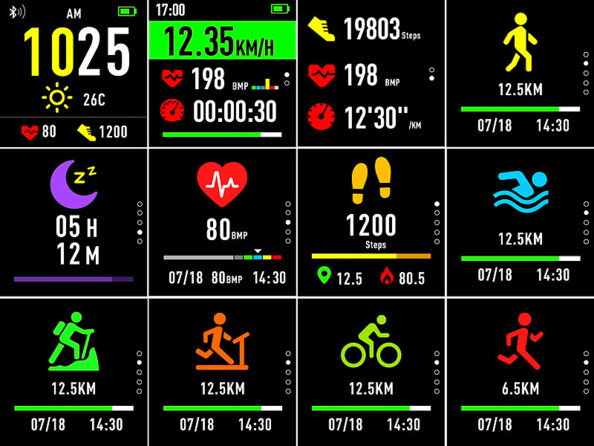 - Possibilité de sélectionner manuellement le sport : marche, course, cyclisme, course sur tapis, randonnée, natation