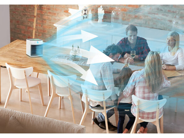 Moderne, compact et flexible, le rafraîchisseur d’air s’intègre à tous les bureaux grâce à sa taille, mais aussi grâce à son design moderne. Comme il fonctionne sur prise USB, il peut se brancher sur une batterie de secours pour vous suivre lors de vos déplacements.
