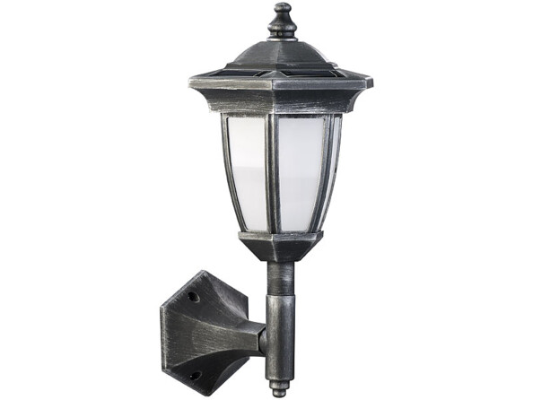 Cette lampe solaire à LED s'inspire d'une lanterne rétro pour créer un point lumineux à côté de la porte d'entrée, mais aussi sur un balcon ou une terrasse.