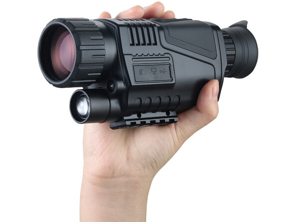 Grâce à ce monoculaire numérique, vous pouvez voir jusqu'à 500 m de distance au crépuscule et jusqu'à 50 m de distance dans la nuit noire. Il suffit d'allumer la lumière infrarouge. Son intensité est réglable sur 9 niveaux. Vous pouvez ainsi l'adapter de manière optimale aux conditions de visibilité.