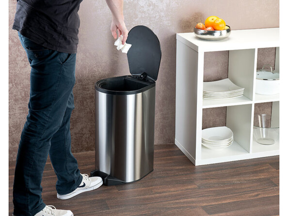Optez pour plus d'hygiène dans votre cuisine : cette poubelle pratique au design intemporel s'ouvre et se ferme automatiquement grâce à un détecteur de mouvement intégré au niveau du pied.