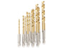 Avec ces foret HSS (ou "acier rapide") vous percez sur différents types de métaux et plastiques. Le revêtement en titane assure quant à lui une longue durée de vie des forets.
