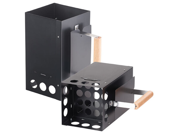 Placez simplement du charbon ou des briquettes à l’intérieur de la cheminée, puis placez cette dernière sur votre départ de feu : petit bois, papier de journal ou encore un allume-feu naturel. Le feu remontera alors le long de la cheminée, attisé par les ouvertures du bas, et votre charbon se transformera en braise bien plus rapidement !