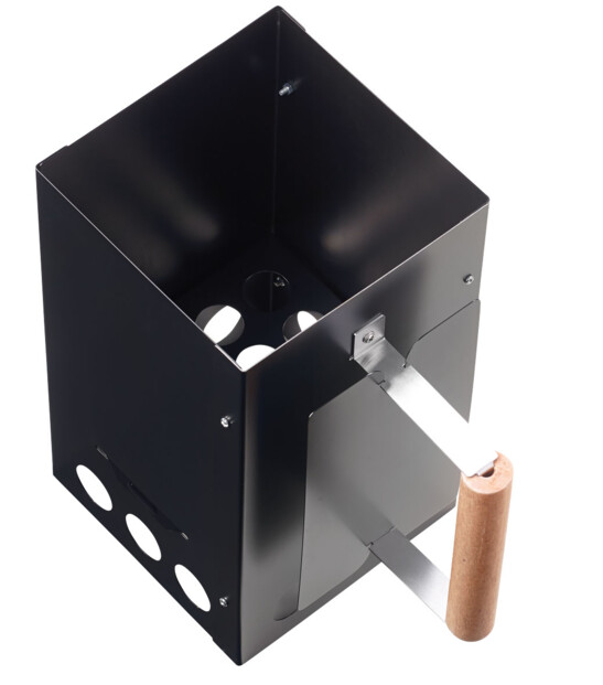 Le manche en bois et l’isolation thermique protègeront vos mains de la chaleur lorsque vous prendrez votre cheminée en main. Il vous suffira de renverser la braise dans le barbecue, et il ne vous restera plus qu'à déposer saucisses, brochettes et délicieux filets !