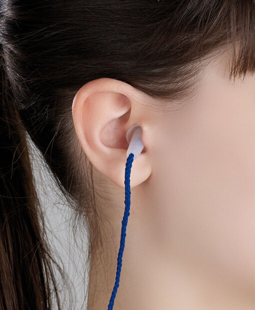 Pratique : un cordon relie les 2 bouchons d'oreilles. Placez-le autour de votre cou afin de les retirer et les garder à disposition sans les perdre.