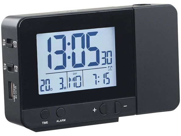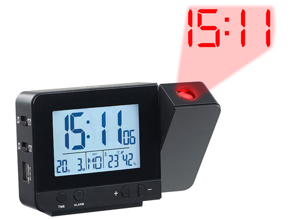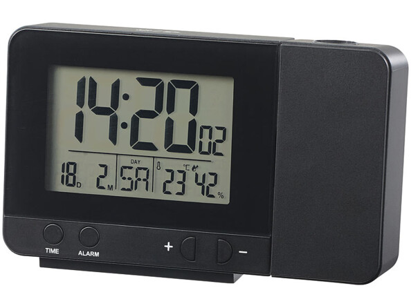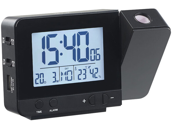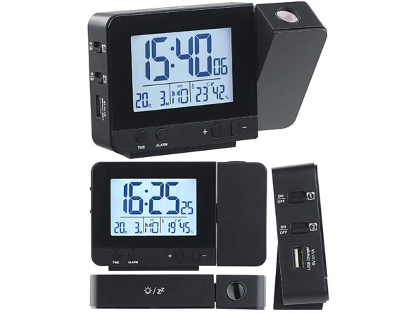Radio-réveil avec projection, 2 heures d'alarme, thermomètre et hygromètre de 22,95 € à 24,95 €
