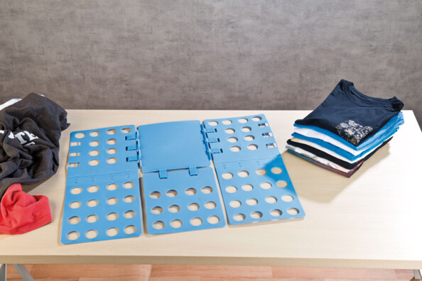 Mettez de l'ordre et gagnez de la place dans vos placards : pliez tous vos vêtements au même format. Convient pour tous vos vêtements : t-shirts, pulls ou débardeurs – grâce aux charnières réglables vous pouvez plier des vêtements de différentes épaisseurs. Les trous permettent l'évacuation de l'air, idéal pour une doudoune par exemple.