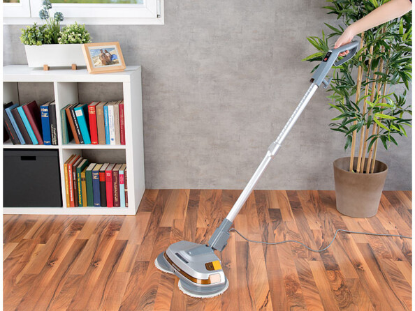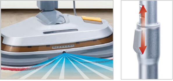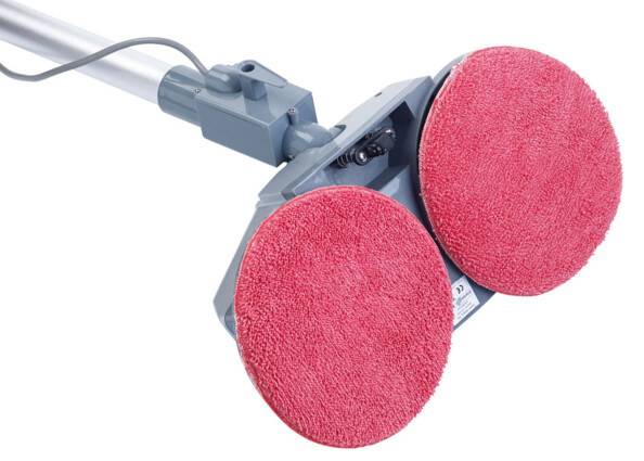 Obtenez des sols bien propres en un rien de temps : avec ses deux têtes rotatives et sa fonction Pulvérisation, nettoyez et polissez les sols lisses, qu'il s'agisse de carrelage, de stratifié, de parquet, d'ardoise, de marbre ou de parquet. Les patchs rugueux se chargent de récurer le sol et les patchs doux achèvent de le faire reluire. Vous n'avez même pas besoin de vous pencher : les boutons se trouvent directement sur la poignée du manche télescopique !