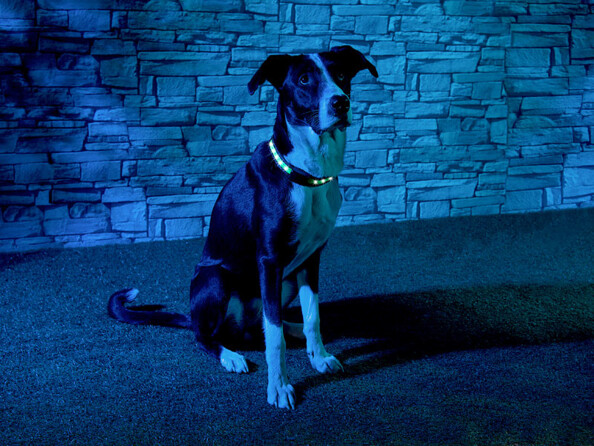 L'accessoire idéal pour la promenade du soir : grâce au collier LED, votre compagnon à quatre pattes reste bien visible, même de nuit.