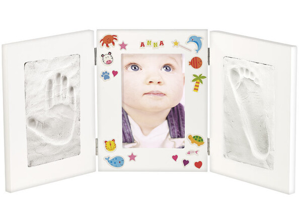À côté de la photo de la plus belle merveille du monde, vous pourrez avoir l’empreinte de sa main ou de son pied. Il suffit pour cela d’aplanir la matière parfaitement modulable et d’y presser le pied ou la main de votre enfant. Après un ou deux jours, cette pâte va sécher et durcir. Un souvenir unique !