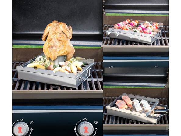 Qui dit barbecue, ne dit pas nécessairement viande : avec cet accessoire 5 en 1 pour barbecue, vous ne vous contenterez plus jamais que de viande et de saucisses lors de vos barbecues entre amis ! Les différents éléments de cet accessoire vous permettent d’apporter un peu de fantaisie dans votre assiette en cuisant des aliments variés. Préparez un délicieux poulet rôti et surprenez vos invités lors de votre prochaine soirée barbecue avec un poulet cuit à la perfection, juteux et grillé à souhait !