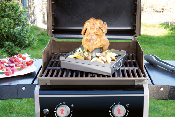 - Idéal pour faire cuire un poulet entier dans un barbecue avec couvercle