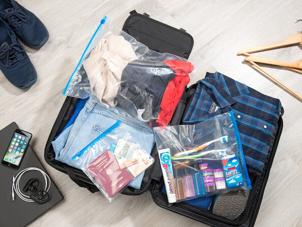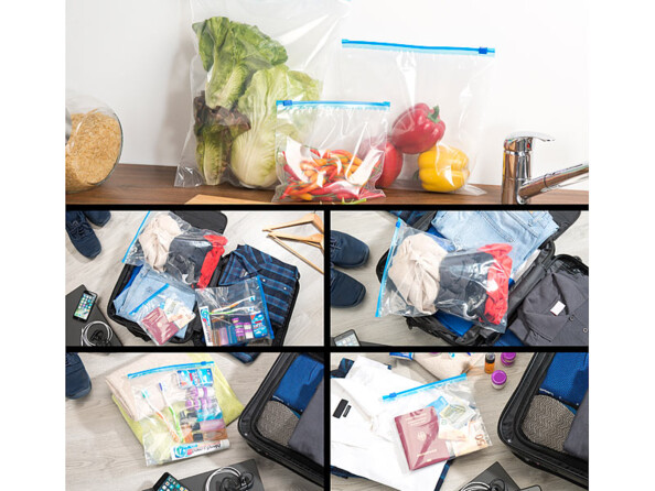 - Très pratiques dans un sac de sport ou de piscine, p. ex. pour y ranger un maillot de bain mouillé