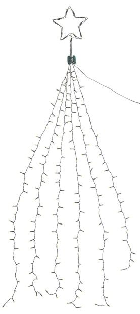 Il vous suffit d’accrocher l’anneau de support sur la cime de l’arbre, de fixer l’étoile de Noël grâce à la pince crocodile puis de laisser pendre sur le sapin les 6 fils composant la guirlande. Le tour est joué !