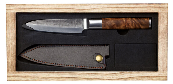 - Couteau dans coffret cadeau et étui en cuir pour la lame