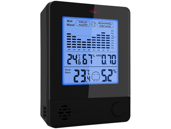 Soyez à l'affût de la moindre moisissure dans votre intérieur et intervenez immédiatement dès que cela s'avère nécessaire, grâce à ce thermomètre-hygromètre avec alarme anti-moisissure !